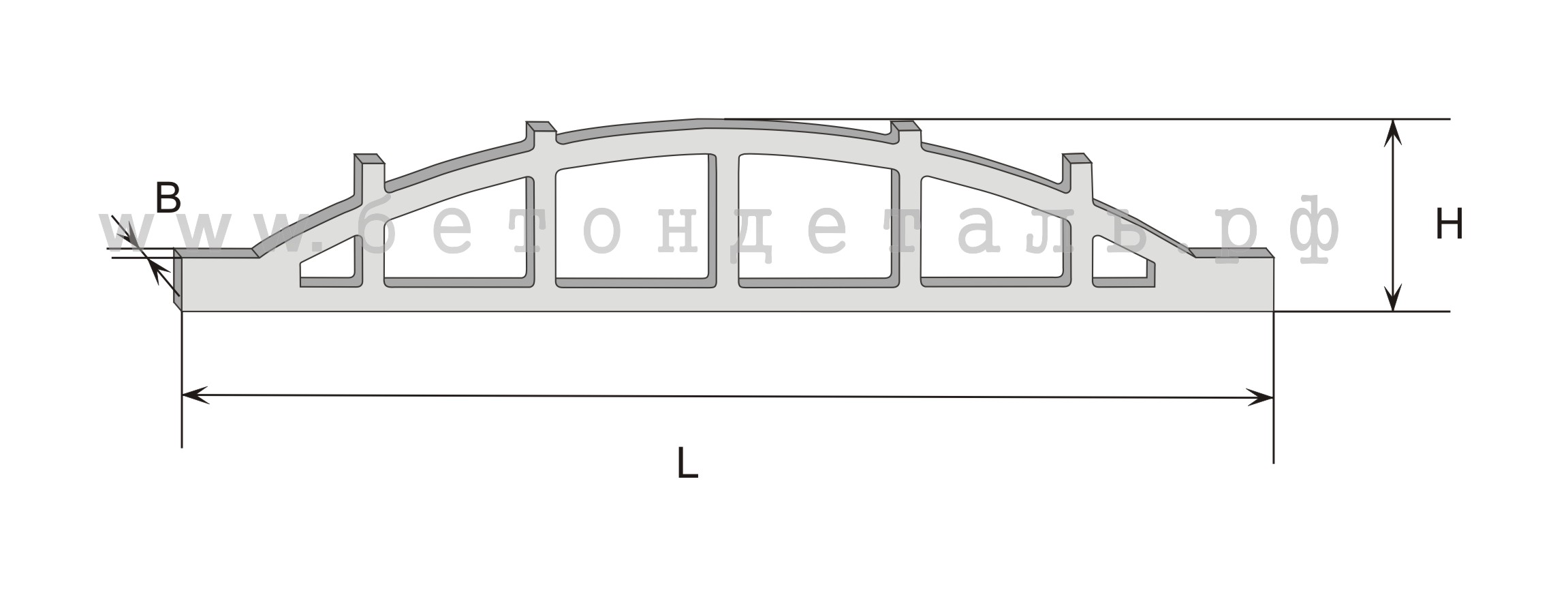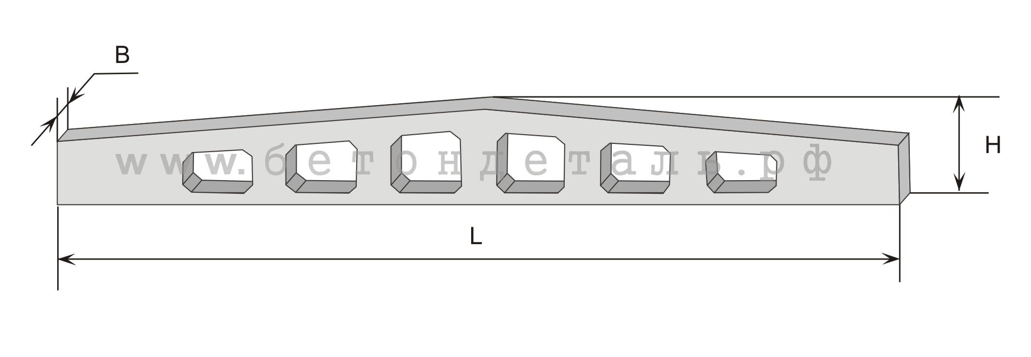 Железобетонные ребристые плиты имеют стандартные размеры, а именно: 1,5X6, 1,5X12, 3X6, 3X12 и 3X18 м. Вес плиты составляет 65-2650 килограмм, для разгрузки и погрузки применяется специальная техника.