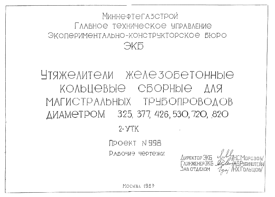 Проект №998. Утяжелители железобетонные кольцевые сборные для магистральных трубопроводов диаметром 325. 377. 426. 530. 720. 820