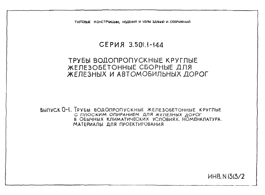 Выпуск 0-1. Трубы водопропускные железобетонные круглые с плоским опиранием для железных дорог в обычных климатических условиях.