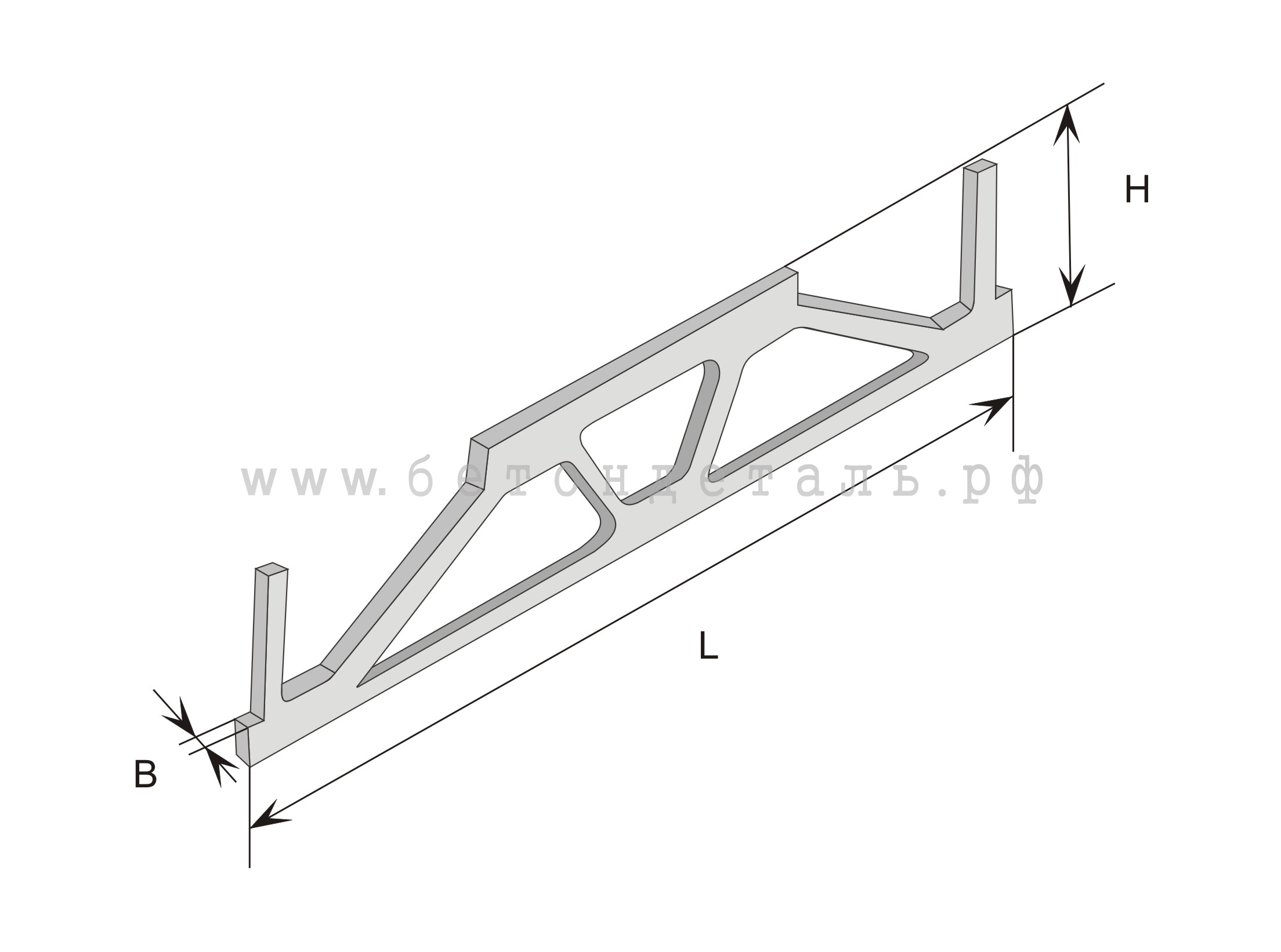 Железобетонные фермы 2ФПС 12 — это каркасные конструкции, представляющие собой, соединенные между собой стрежни. Железобетонные фермы — это одни из основных конструктивных элементов, позволяющих возводить одноэтажные здания. Данные изделия предназначены для создания крыши. Железобетонные фермы 2ФПС 12 применяются для покрытий зданий со скатной кровлей.