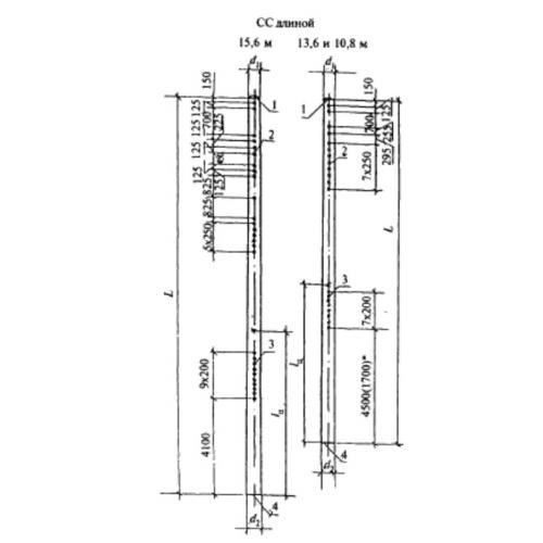 Стойки СС 156.6-5 – ЖБИ, используемые в стройке контактных ж/д дорог. В сечении элементы представляют собой коническое кольцо заданного диаметра. По длине стержня имеется ряд вентиляционных отверстий. Ближе к ним в нижней части имеется диагностический репер, используемый для подключения проверочной аппаратуры. На поверхности стоек нанесены специальные риски. С их помощью определяют центр тяжести и положение в пространстве. Для соединения с консолями и кронштейнами имеются закладные металлические звенья; для закрепления к стакану фундамента – анкерные болты.
