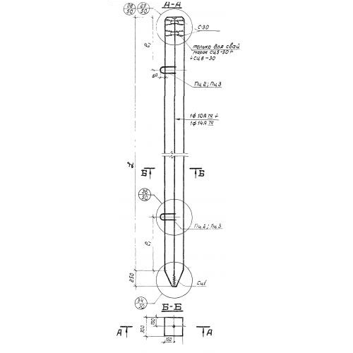 СЦ 4,5-30    Свая квадратного сечения без поперечного армирования ствола (центральное армирование) (Серия 1.011-6).