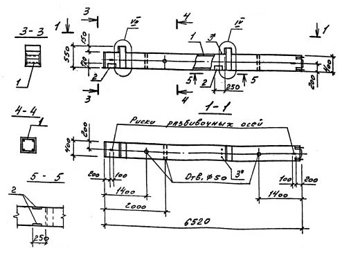 2КВО 36.36-3.22.00    Колонны одноконсольные для верхних этажей (Серия 1.020.1-4).