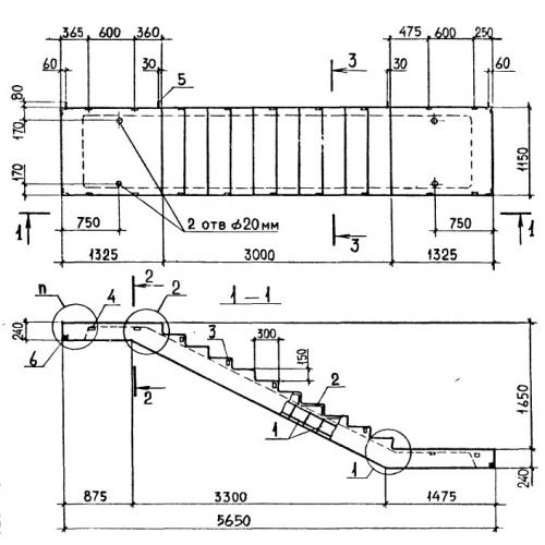 ЛМП 57.11.17 Лестничные марши ребристые с полуплощадками по серии 1.050.1-2.