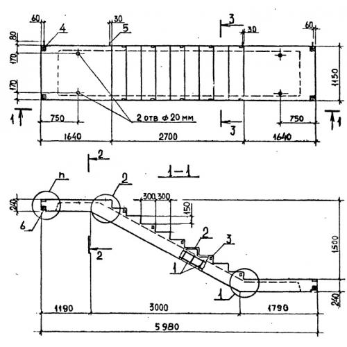 ЛМП 60.11.15 Лестничные марши ребристые с полуплощадками по серии 1.050.9-4.93.