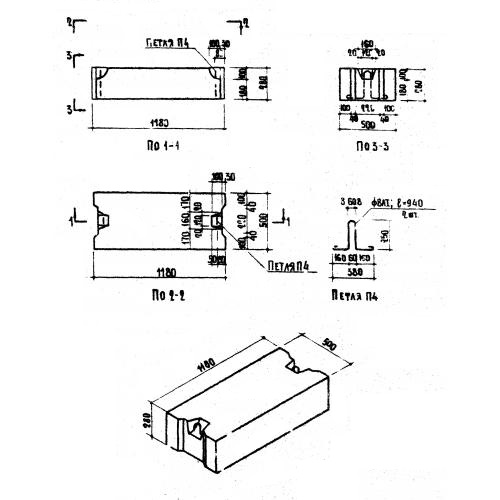 ФСН 5  Бетонные блоки фундамента сплошные Серия 1.116-1.