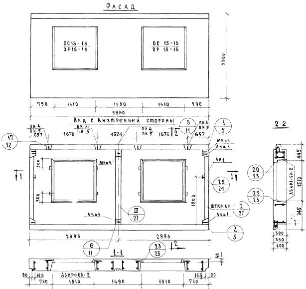 НР1-60.29.35-2   Наружная стеновая панель рядовая по Серии 1.132-1.