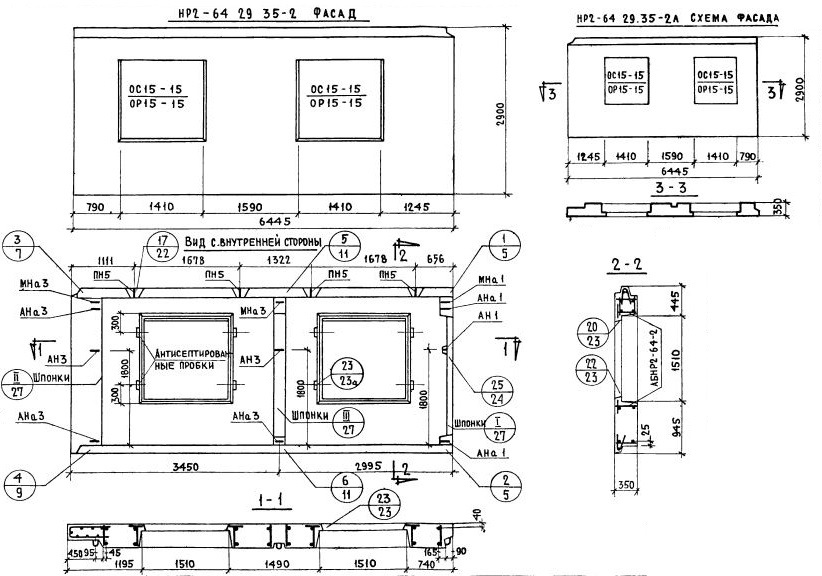 НР2-64.29.35-2 Наружная стеновая панель рядовая по Серии 1.132-1.
