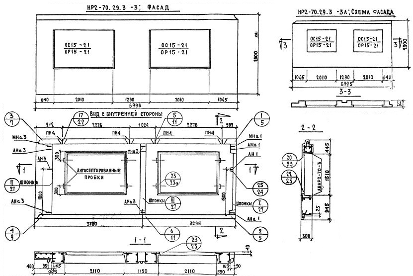 НР2-70.29.3-3   Наружная стеновая панель рядовая по Серии 1.132-1.