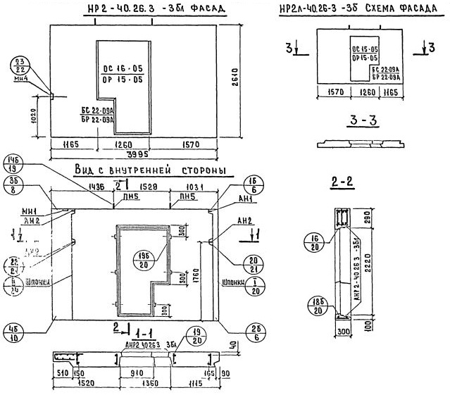НР2л-40.26.3-3б Наружная стеновая панель рядовая по Серии 1.132-2.