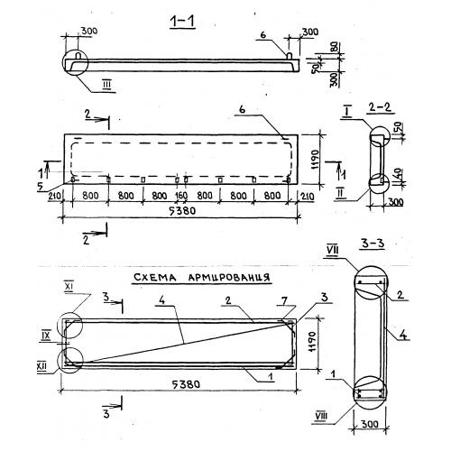 ПРЛ 54.12.3 Плита лоджий ребристая.  Панели перекрытия лоджий по серии 1.137.1-6.