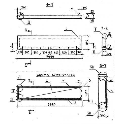 ПРЛ 60.12.3 Плита лоджий ребристая.  Панели перекрытия лоджий по серии 1.137.1-6.