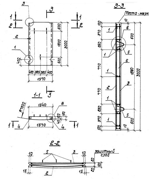 Панель стеновая для цилиндрических сооружений с радиусом кривизны 7,5 м; высотой 3 м; первого типа по нагрузке.